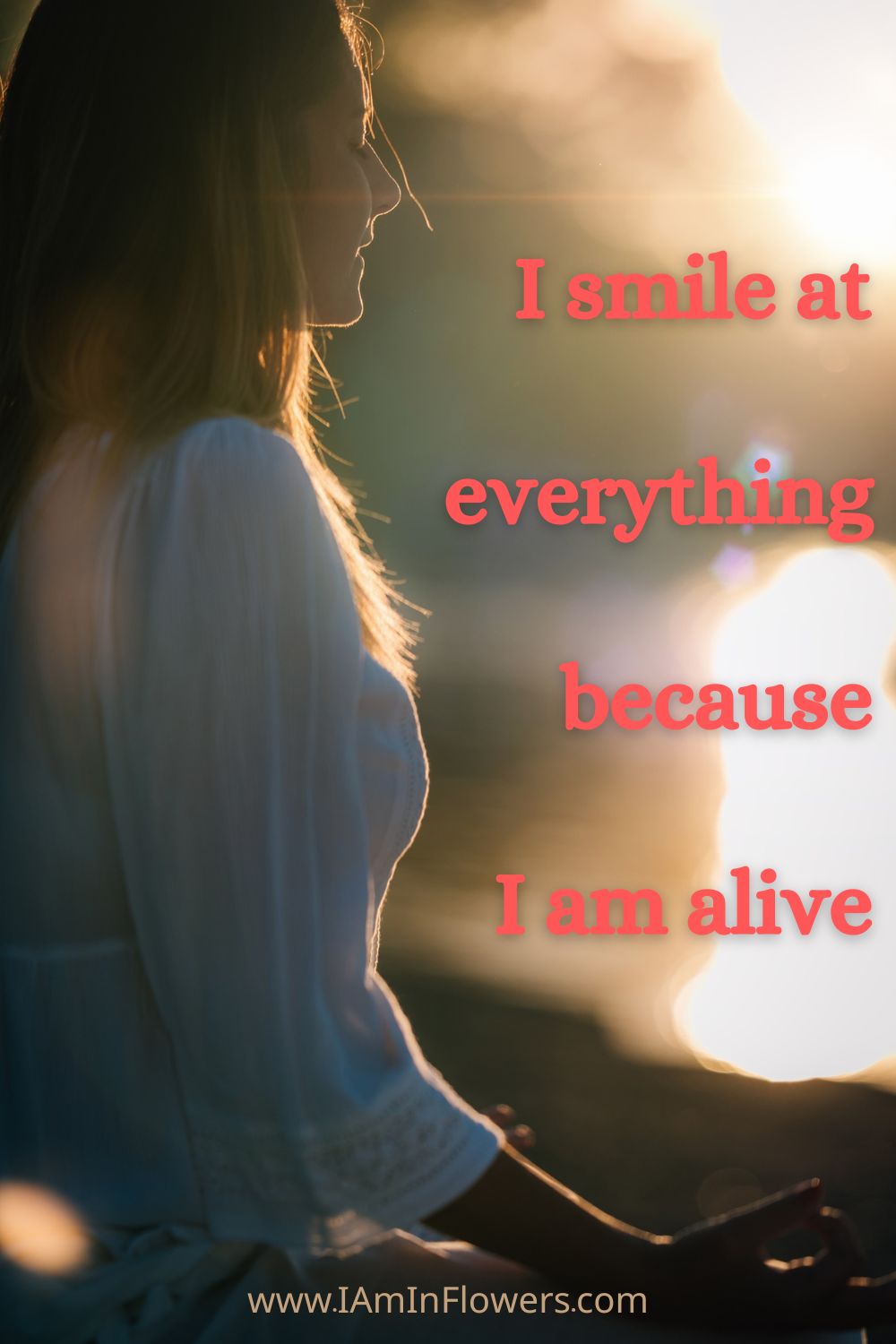 This is where the affirmation “I smile at everything because I am alive” comes in as a healing force. This active affirmation is a powerful antidote to the overwhelming and sneaky program of weakness that can invade our minds and bodies. This affirmation has so much power because it directly challenges and immediately decodes these negative thought patterns. It decodes the very program of weakness in life. Just allow yourself for it.